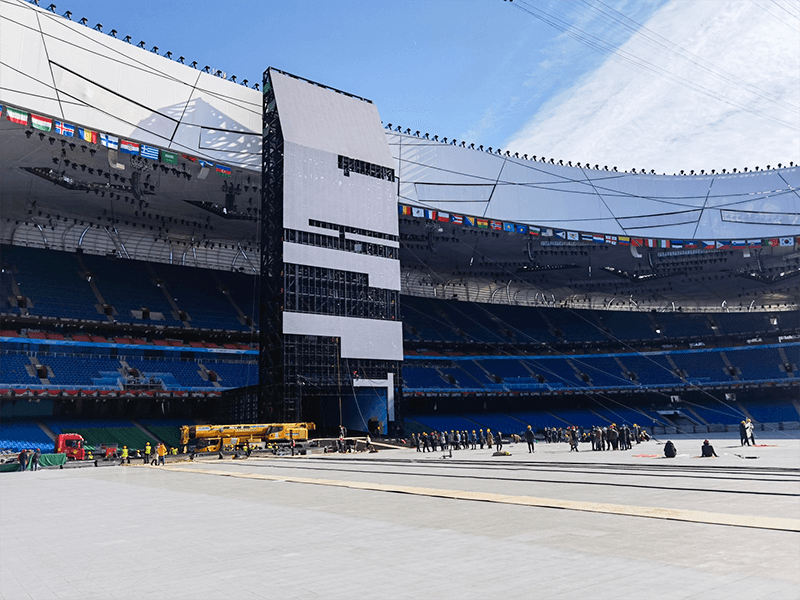 “冰瀑”設施高約60米,用鋼量1000多噸,由6000多根構件組成。作為基礎的結構裝置,后期集成系統(tǒng)、升降系統(tǒng)包括LED顯示屏等系統(tǒng),都需要在此裝置上進行安裝,因此對于鋼結構構件焊縫和安裝誤差要求極為苛刻,要求穿孔率百分之百,誤差要求控制在2mm,最終我們把誤差控制在了1.5mm,用37天按時完成了加工與安裝工作,該設施在冬奧會開幕式上震驚了全世界數千萬的觀眾。