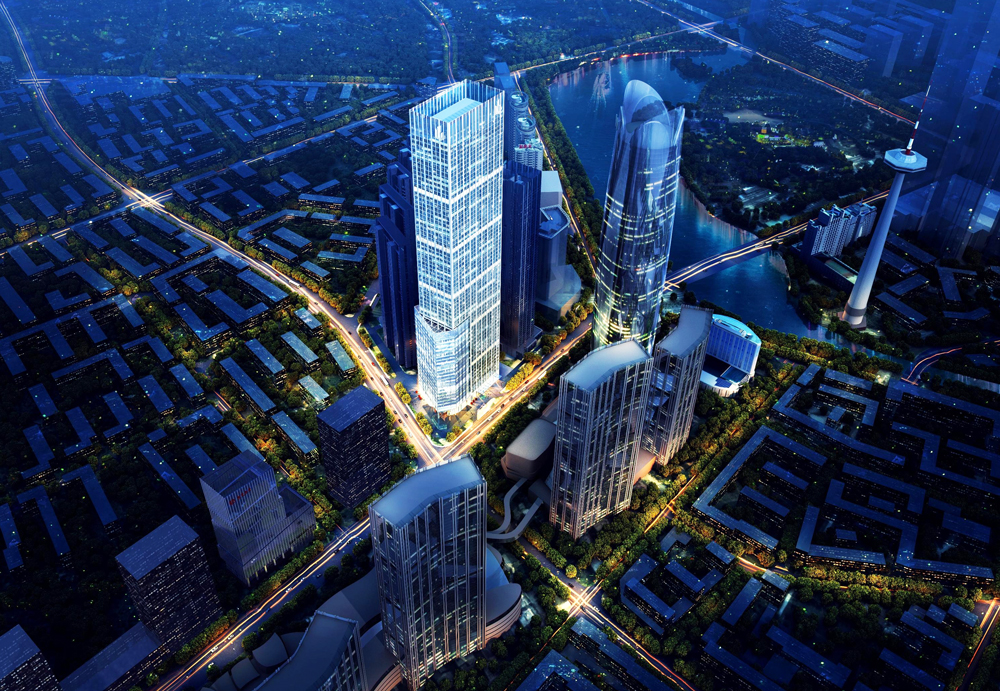 項目位于沈陽市沈河區青年大街109號凱賓斯基酒店后身,地下5層,地上74層,總建筑高度318.35米,標準層面積2700平米,總建筑面積26.5萬平米。