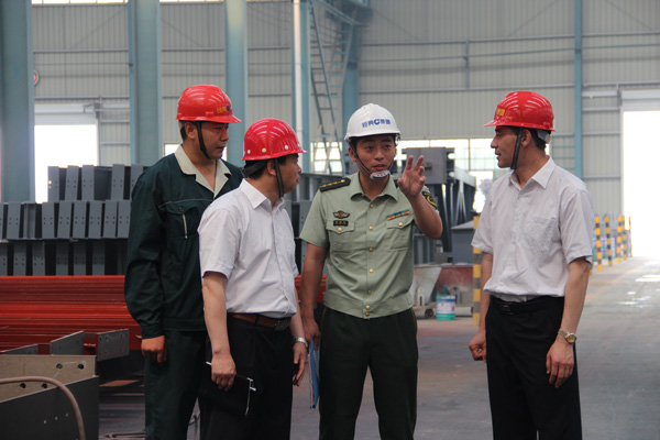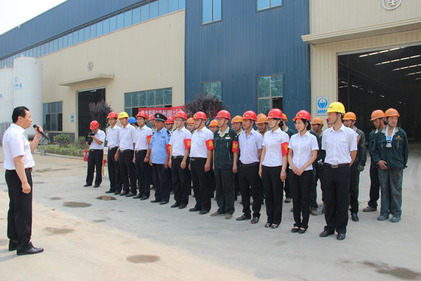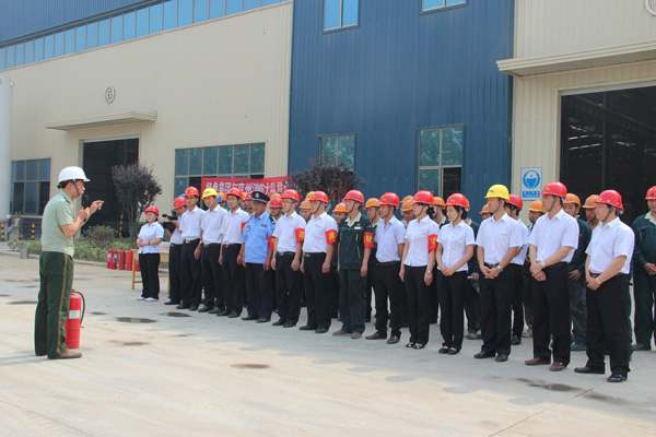 演習(xí)后,消防大隊(duì)房隊(duì)長(zhǎng)到生產(chǎn)車(chē)間給予合理的指導(dǎo)與建議