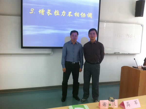 集團(tuán)公司總經(jīng)理杜福生與廈門大學(xué)統(tǒng)計系博導(dǎo)林擎國教授合影